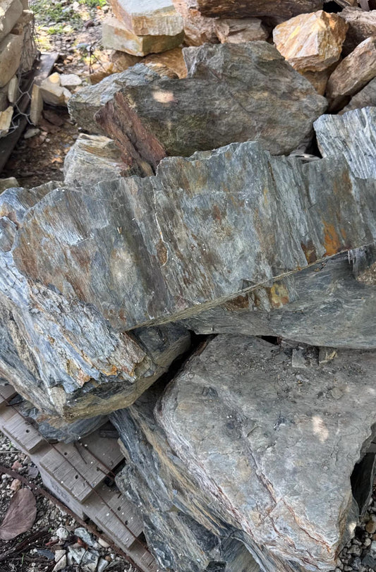 Elevate your outdoor spaces with the rich, earthy tones and striking textures of our Colombian Rock and Caprock Slabs sourced for their beauty and durability, and hand-selected to bring your landscape to life.